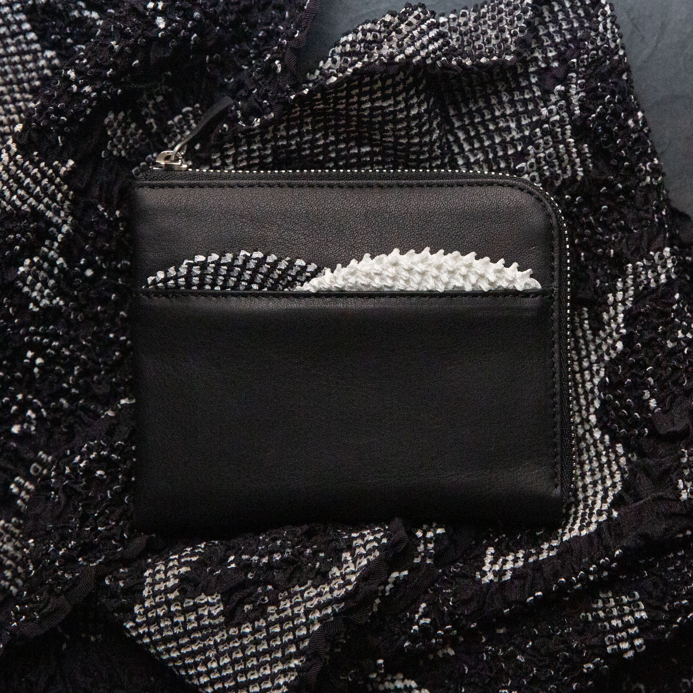 Material | Cowhide (outer), Silk (shibori fabric section), Cotton (lining)