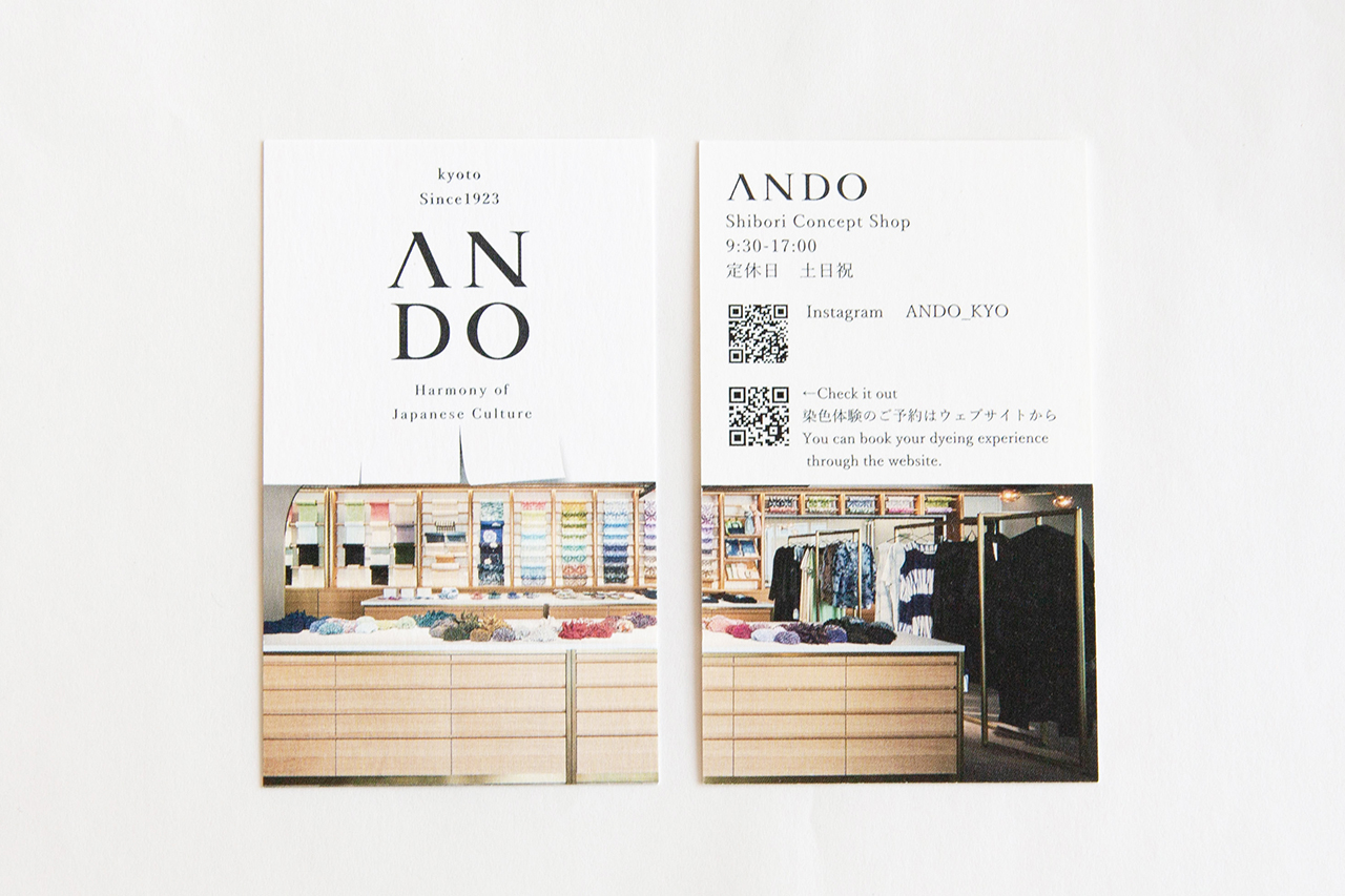 ANDO shibori concept shop business card